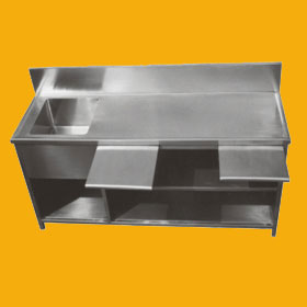 Good & High utility, general purposes like cutting, chopping, shorting etc. Heavy gauge S.S. top with Sink & splash back arrangement, could be provided with one or two under or overhead shelves to create additional working space for better service, could be fabricated as per customer size and specifications.