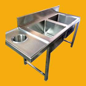 A high utility equipment in washing area, completely fabricated in Stainless Steel with a attached garbage collection dump table to facilitate washing operation. Size of bowl as per customer’s requirements.