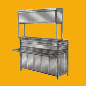 Comfortable working and hygienic way of serving food in Pantry, Juice area, Barbeque, Pav-Bhaji & Chat with completely S.S. fabrication with all side grooved panelings, provided with overhead shelves unit for additional working area, could be fabricated as per customer’s requirements.
